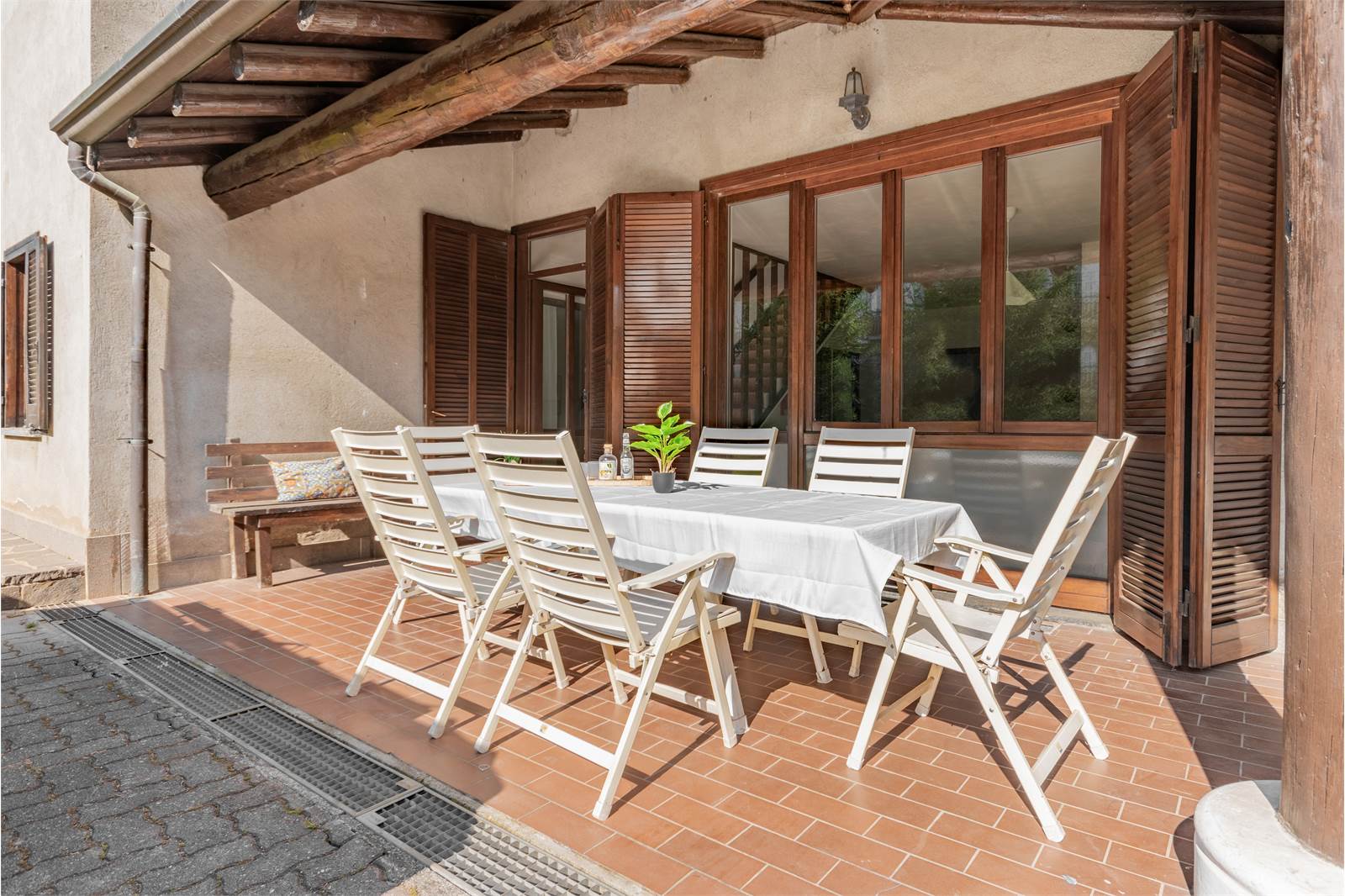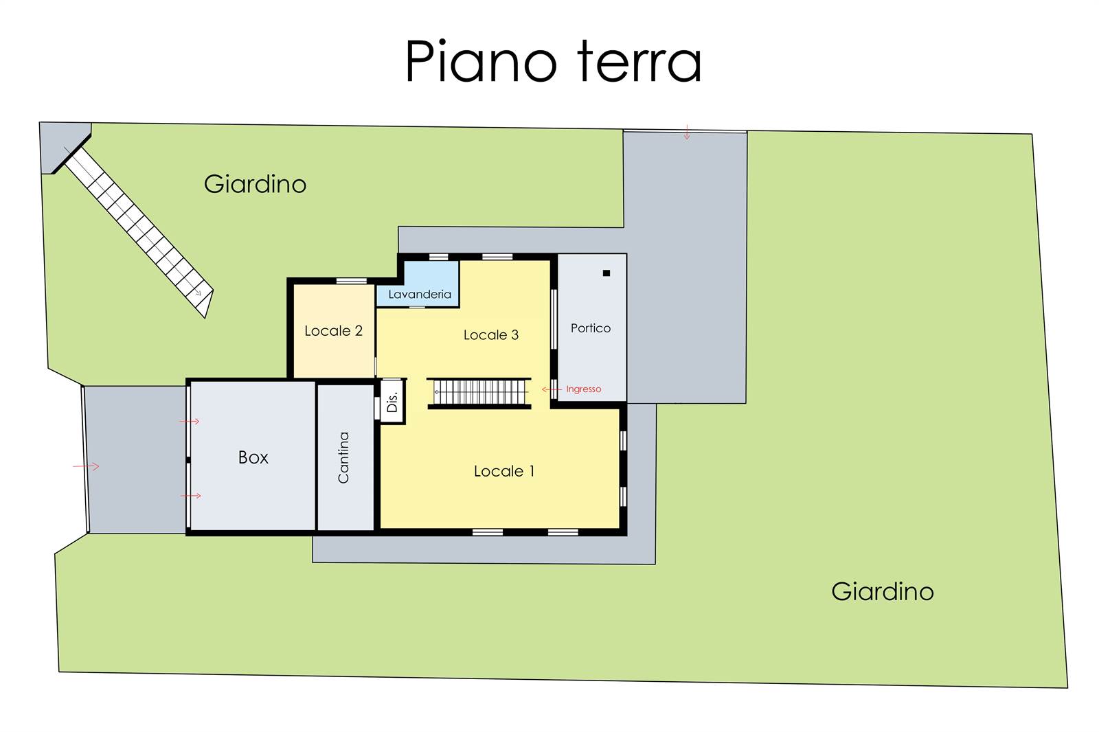 Dal secondo cancello carraio si accede al retro della casa, dove si può godere della parte più pianeggiante del giardino e tramite il portico si entra al piano terra composto da grandi e luminosi locali, oltre al bagno, dove è possibile realizzare una grande zona hobby o ricavare un secondo appartamento. Il piano è collegato anche internamente al resto della villa.