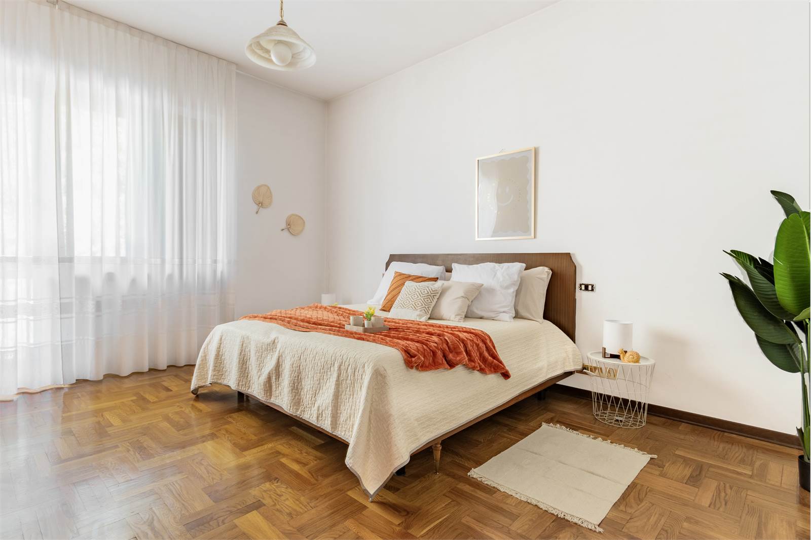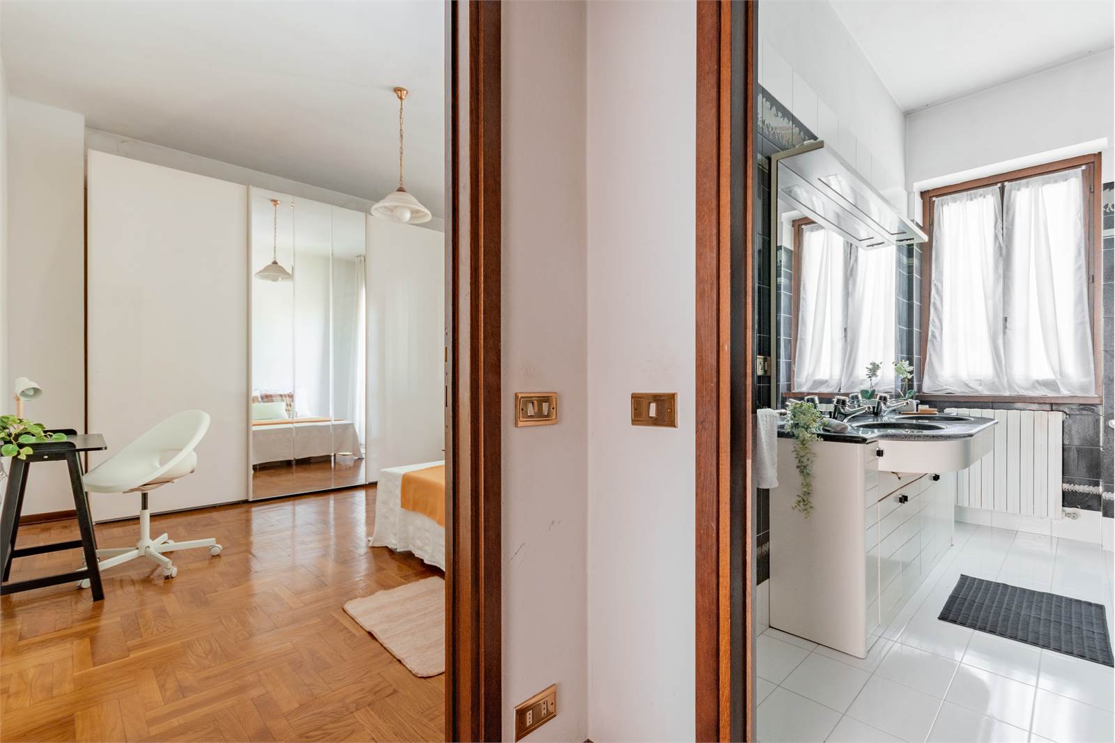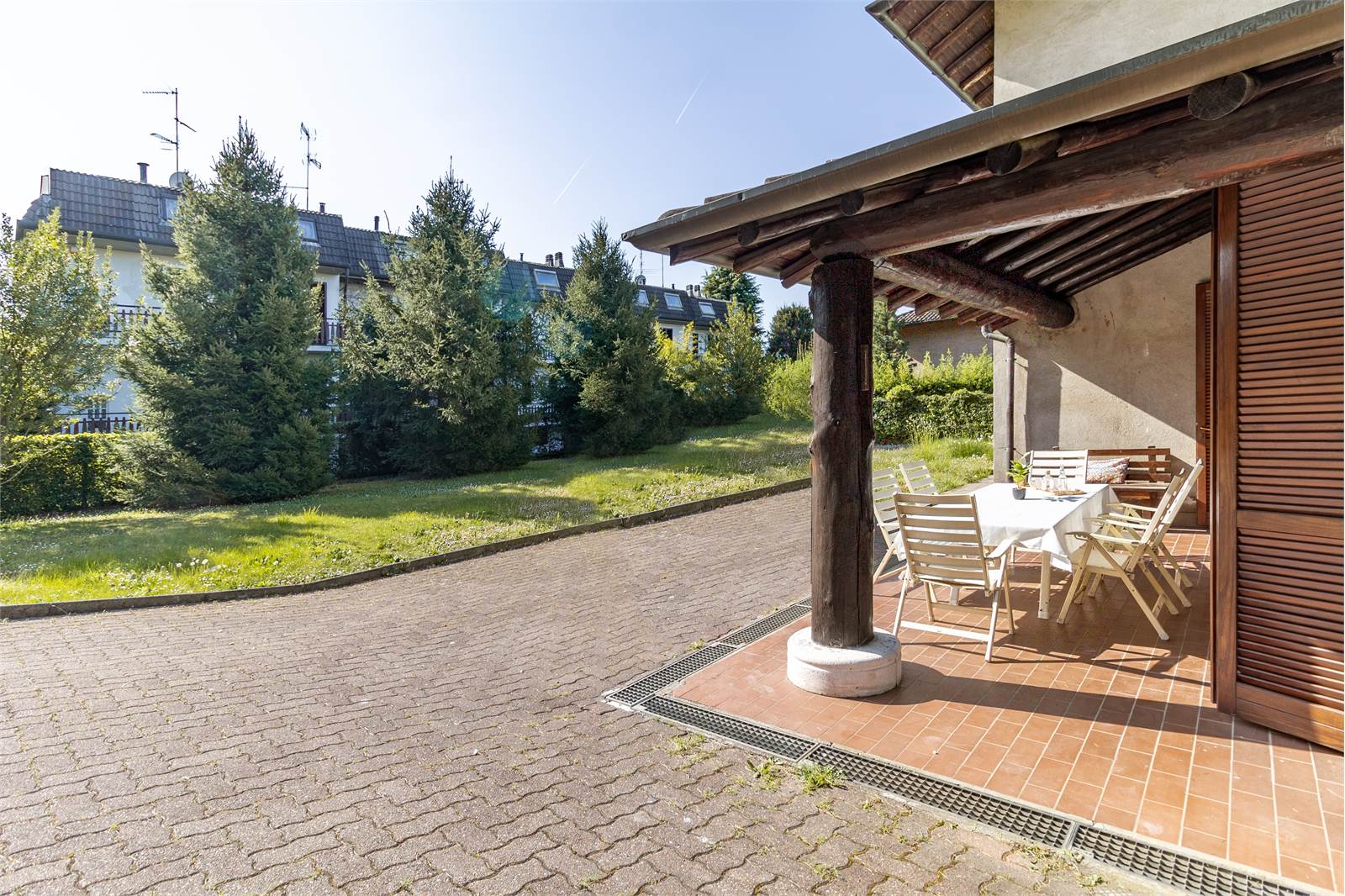 Completa la soluzione un box doppio in larghezza e giardino su quattro i lati.
