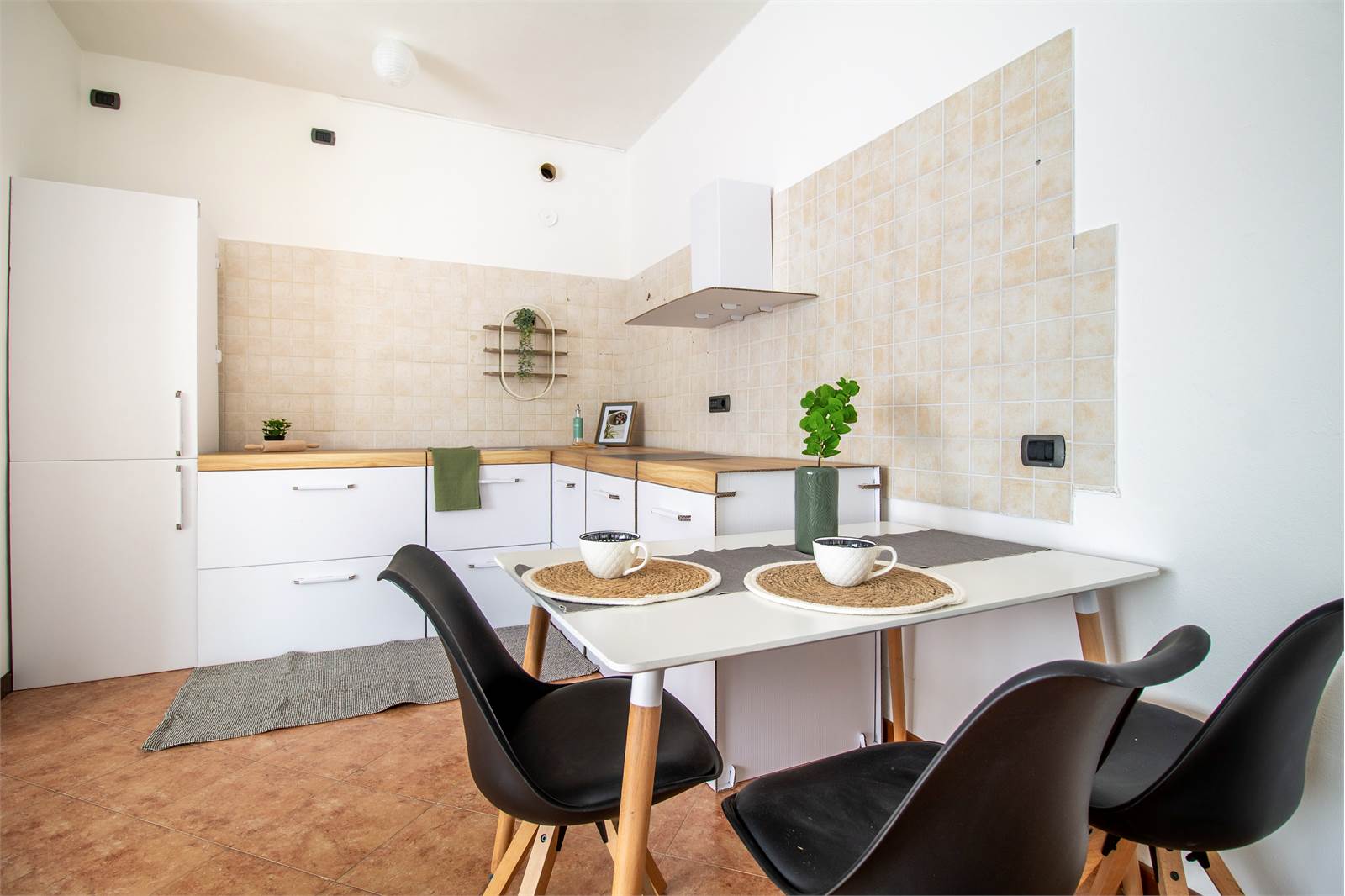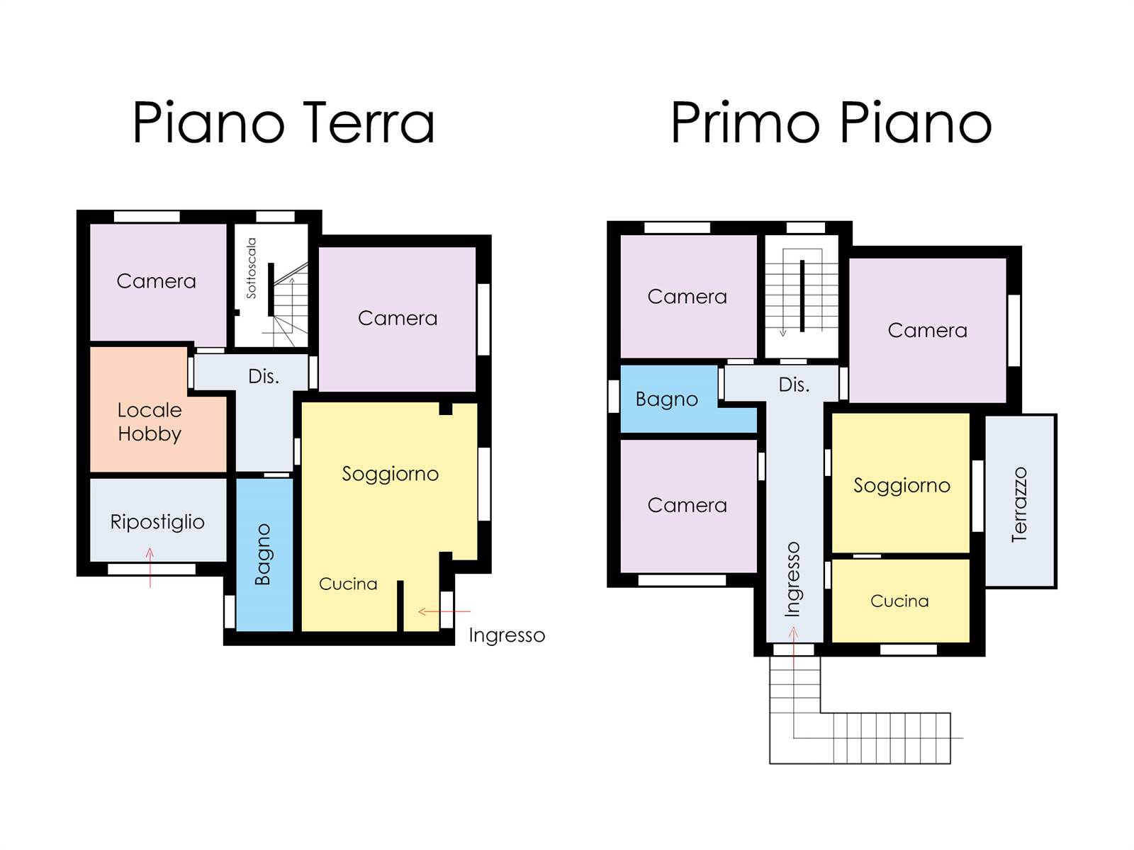 E un secondo appartamento di 122 mq al primo piano composto da soggiorno, cucina abitabile, tre camere, bagno e balcone.
