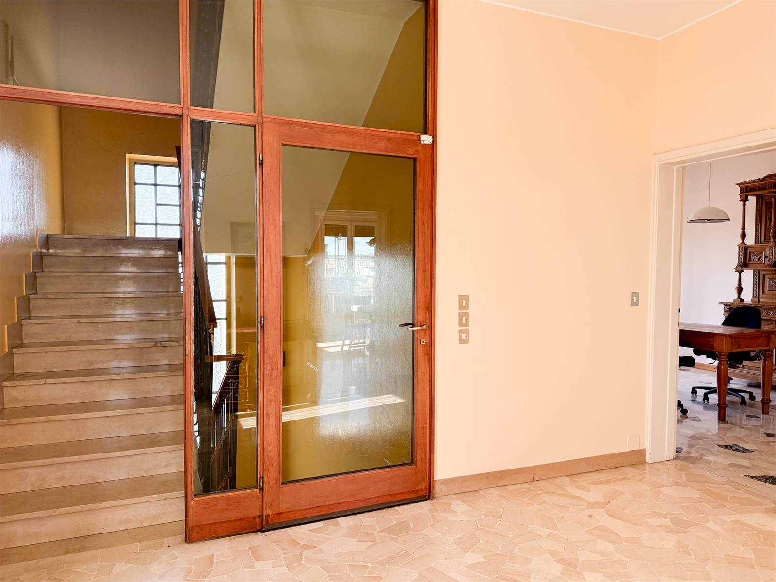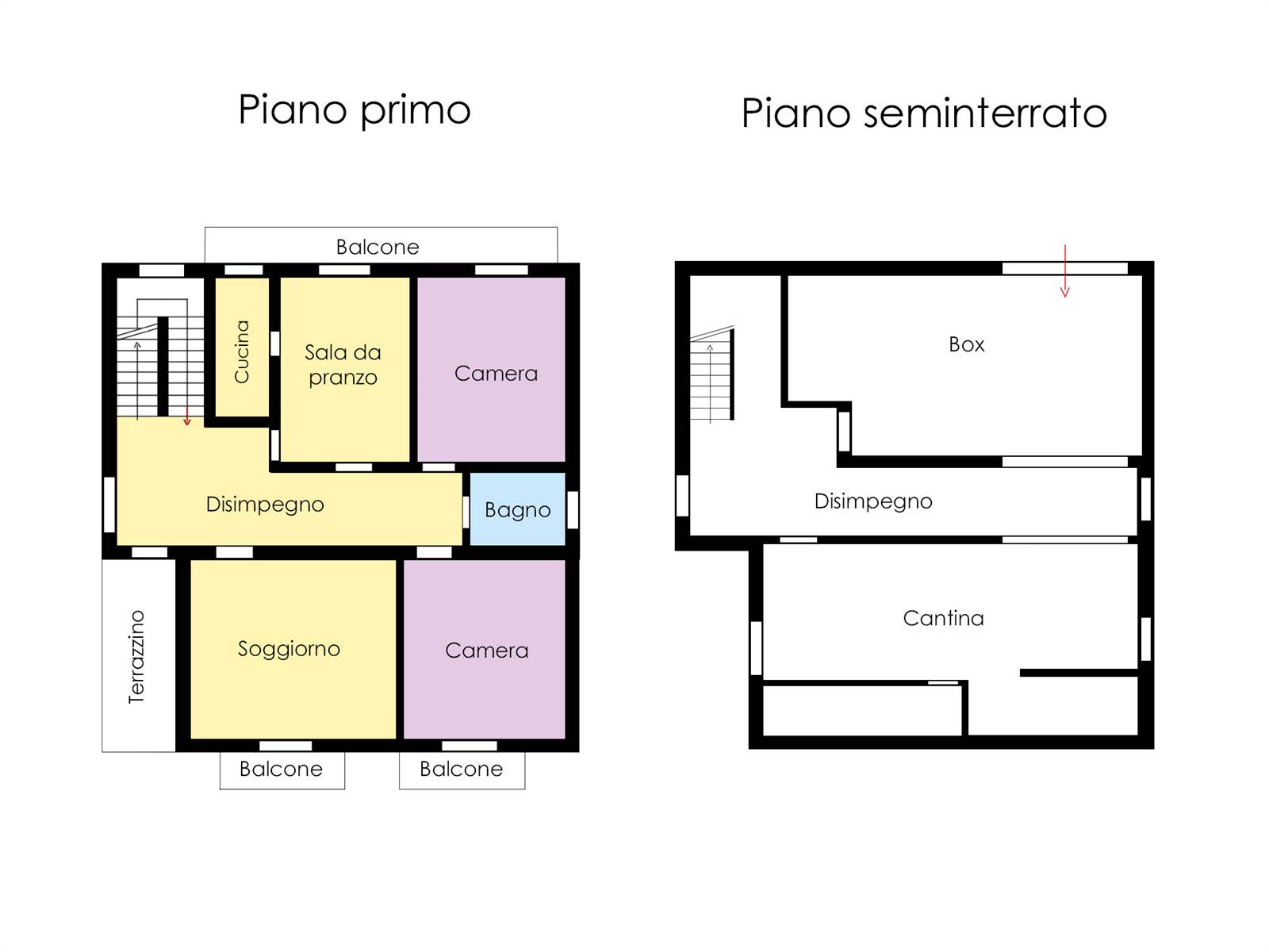 - Primo piano di 160mq composto da grande ingresso, cucinotto con sala da pranzo, soggiorno, due grandi camere e bagno, oltre a un terrazzino e tre balconi.