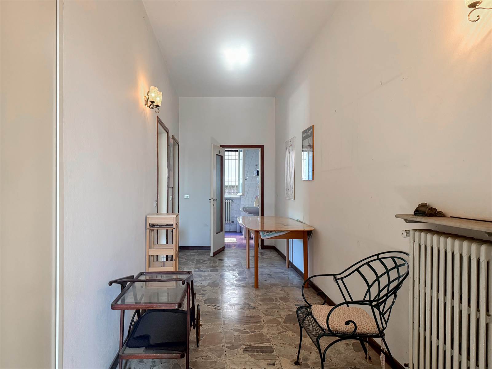 - Piano terra di 100mq con ampio corridoio d'ingresso, cucina, soggiorno, camera con balcone e bagno.