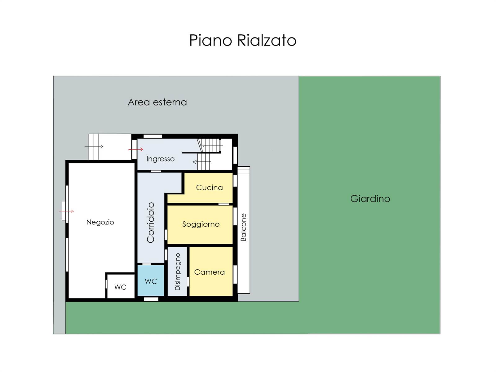 - Piano terra di 100mq con ampio corridoio d'ingresso, cucina, soggiorno, camera con balcone e bagno oltre a negozio di 54mq.